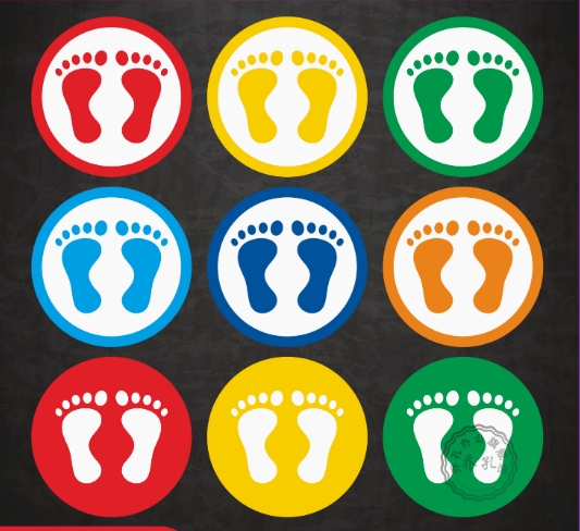 防滑耐磨腳印地貼幼兒園引導指示地面定點站位地貼工廠車間學校排隊圓形腳丫腳印地板貼紙定位標識貼標示定制
